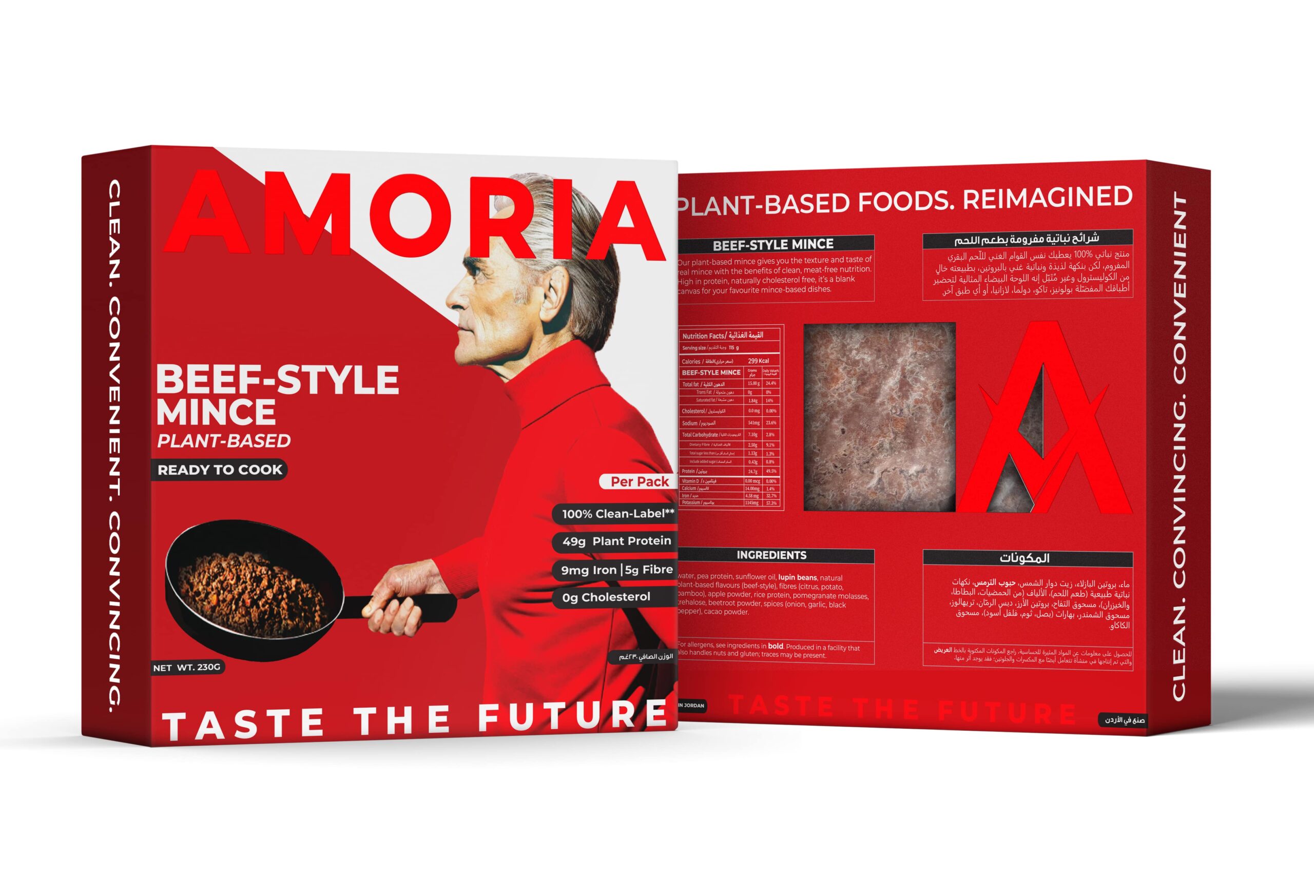 water, pea protein, high oleic sunflower oil, lupin beans, natural plant-based flavours (beef-style), fibres (citrus, potato, bamboo), apple powder, rice protein, pomegranate molasses, trehalose, beetroot powder, spices (onion, garlic, blackpepper), cacao powder.