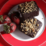 water, dark chocolate (73 % cocoa, cocoa liquor, sugar, cocoa butter, soy lecithin), gluten-free flour (garbanzo bean flour, potato starch, tapioca starch, wholegrain sorghum flour, fava bean flour), muscovado sugar, vegetable oils (high oleic sunflower, coconut), lupin beans, cacao powder, trehalose, courgette powder, ground almonds, pea protein, hazelnuts, cornstarch, natural vanilla essence, rice protein, sea salt, baking soda (E500).