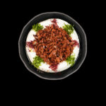 Smooth high protein house-made lupin and rice protein spread. Tastes similar to hummus but packs a lot more protein. Topped with Amoria’s flavourful high protein plant-based mince.